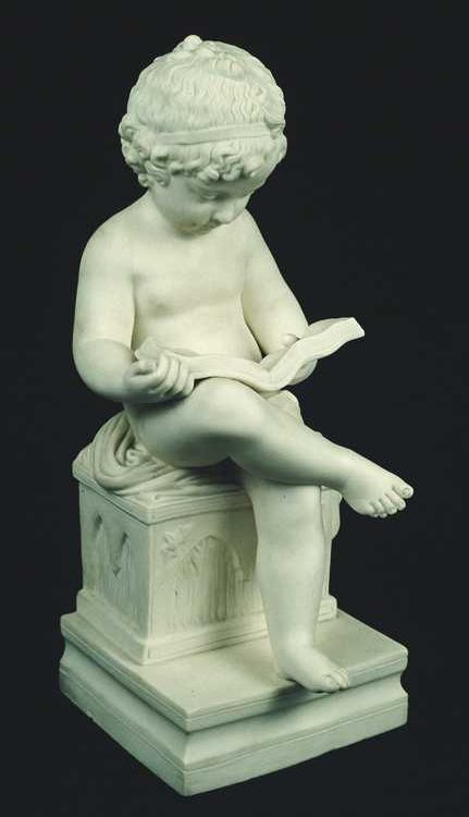 Wit biscuit beeld van lezend kind, meisje, zittend o...