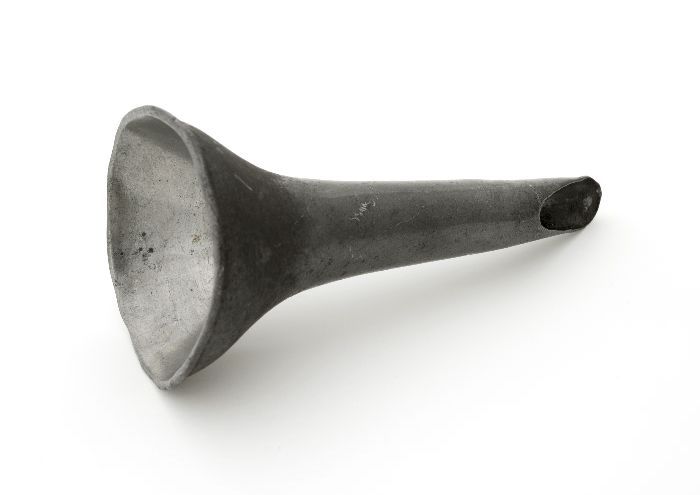 Tinnen worststopper met trechtervormig mondstuk en b...