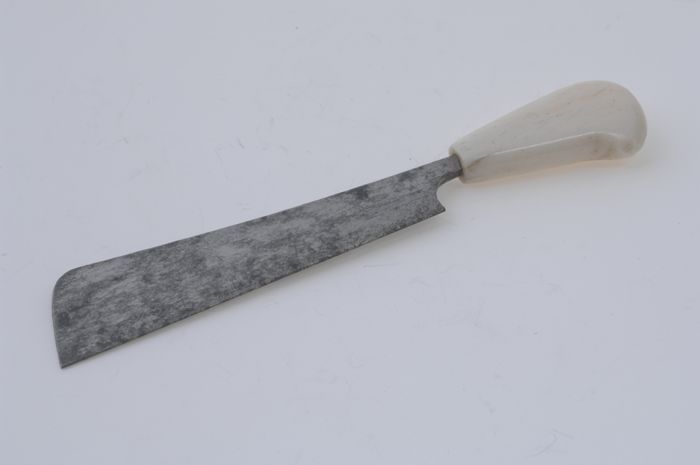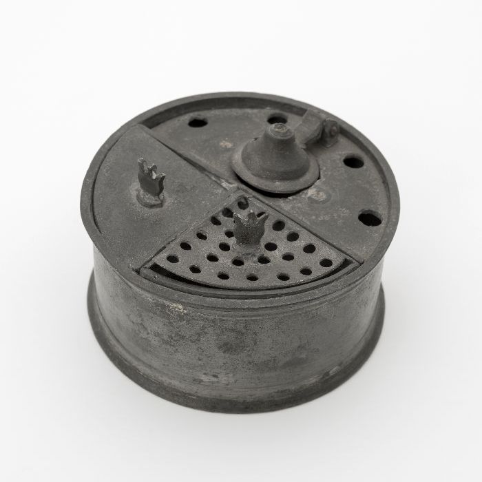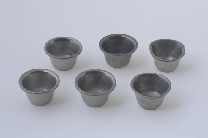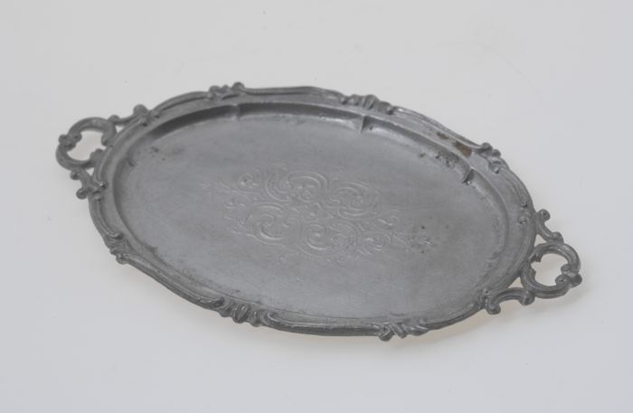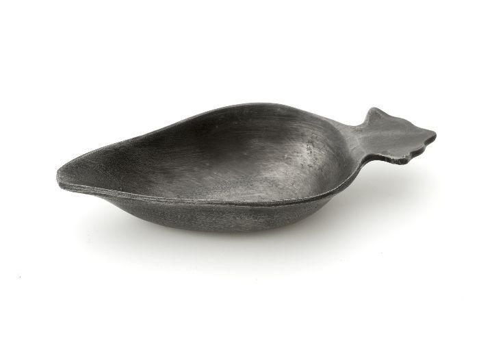 Druppelvormige tinnen medicijnschuit met handvat en ...