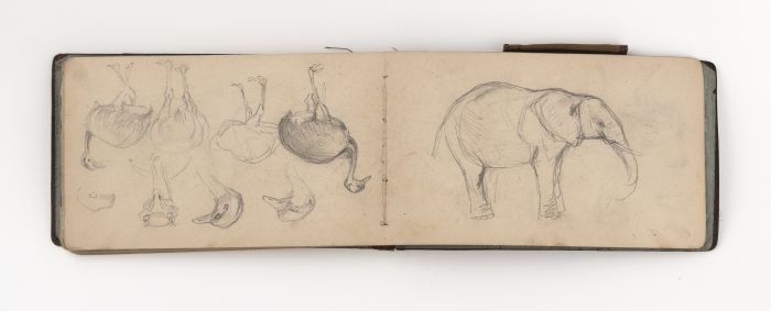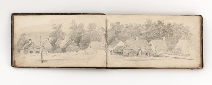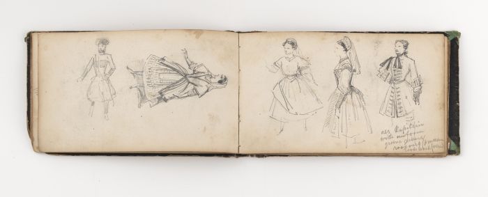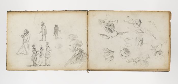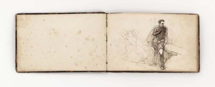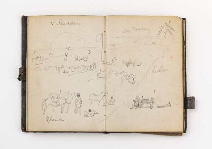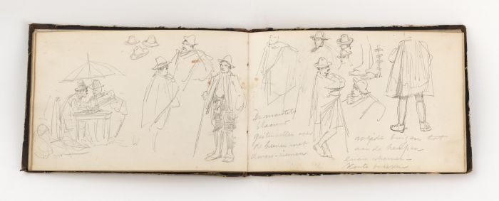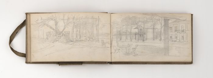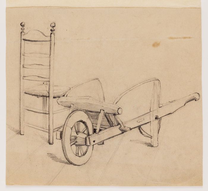 Tekening, met op voorzijde studie kruiwagen en stoel...