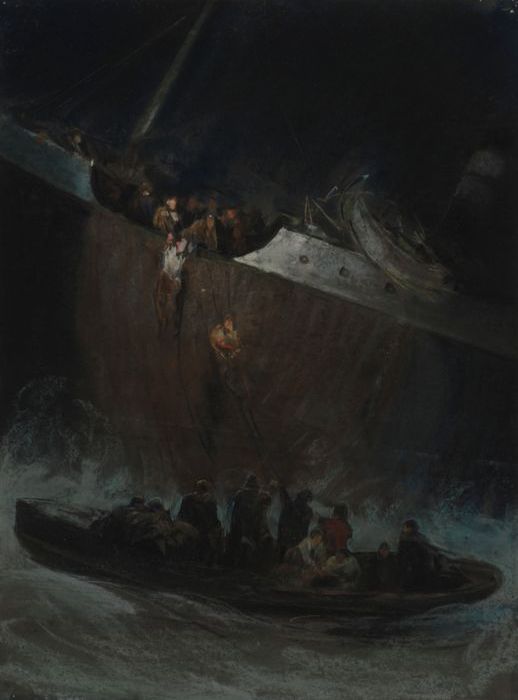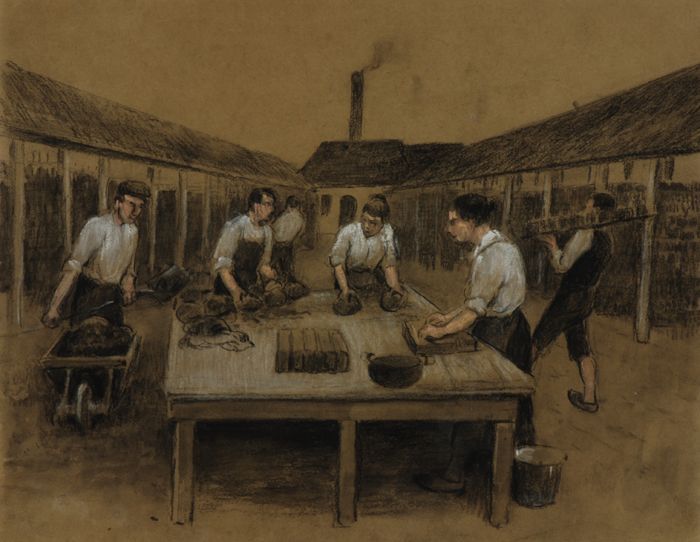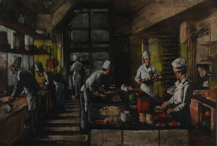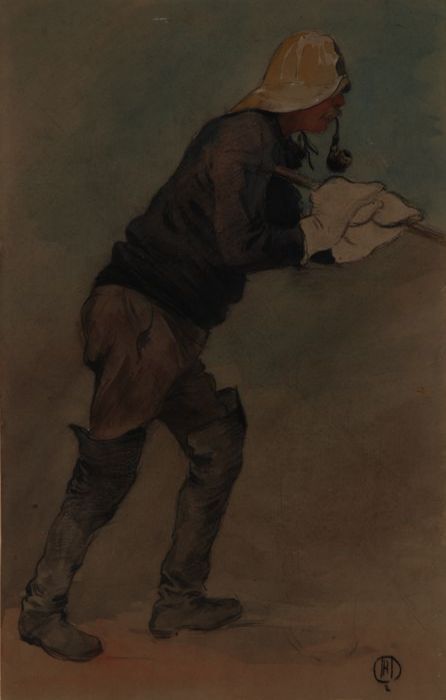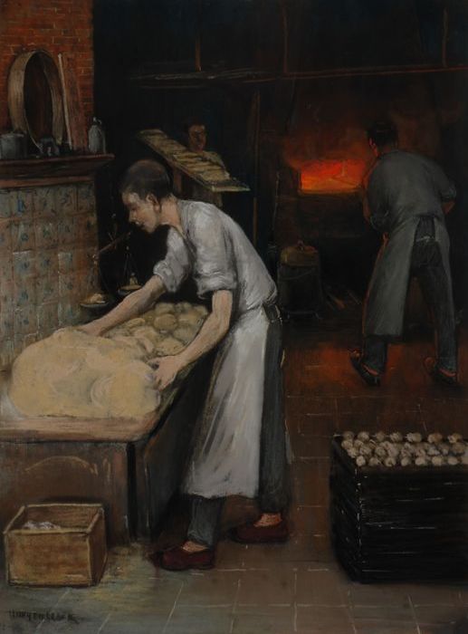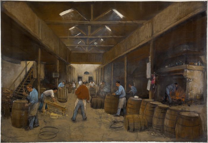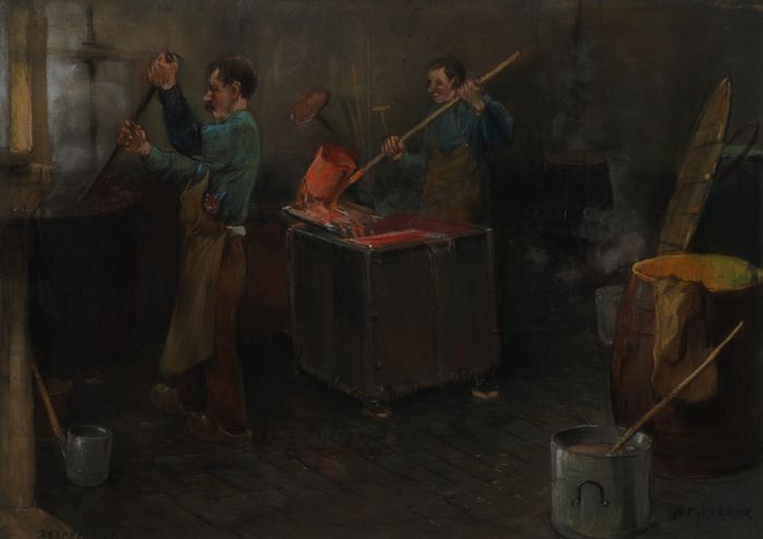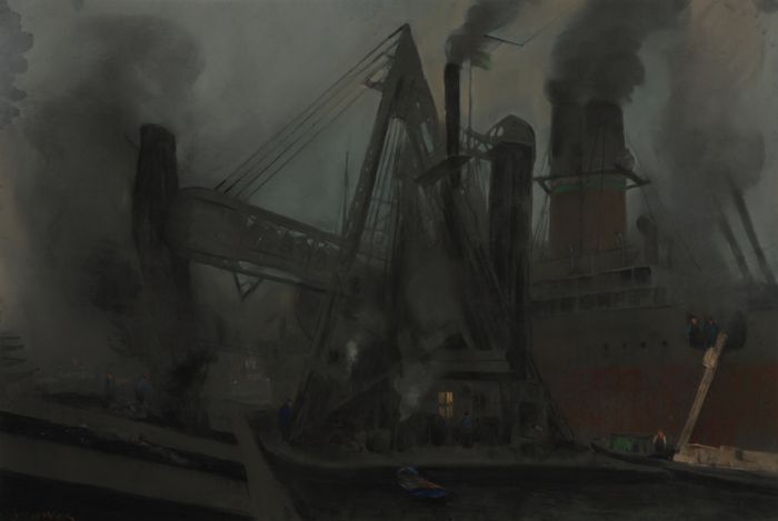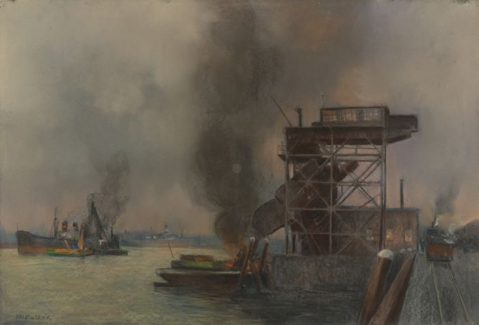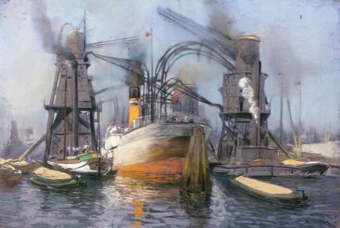 Pastel 'De Graanboot': overslag van graan door twee ...