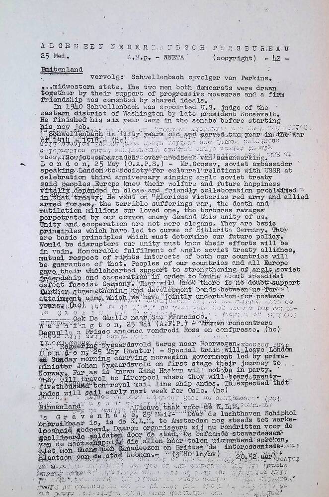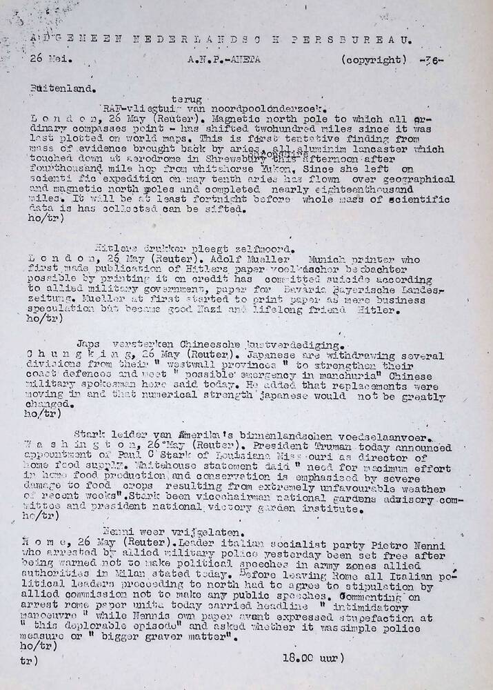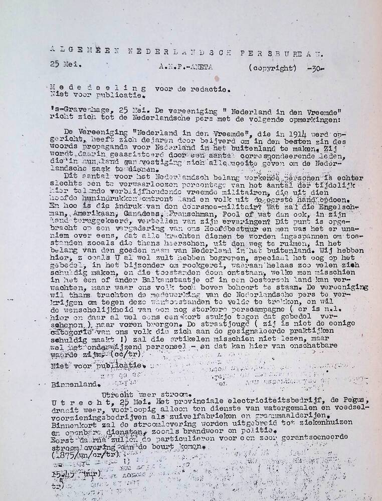 Algemeen Nederlandsch Persbureau, mededelingen, 26 m...