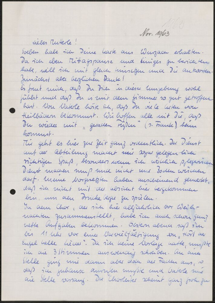Brief van Hubert (zoon) aan Ella (Mutterle), 11-1963