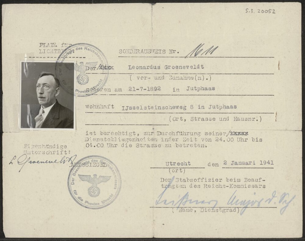 Sonderausweis Nr. 1611 op naam van Leonardus Groenev...