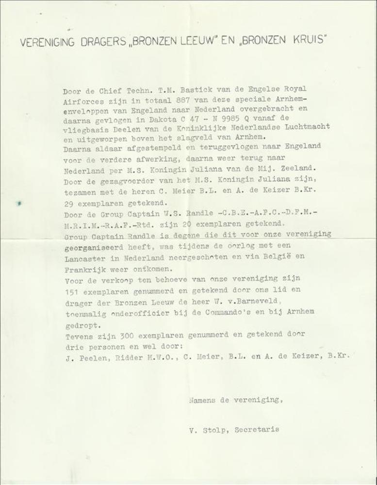 Herdenkingsenveloppe met een briefje, Arnhem, Ver. D...