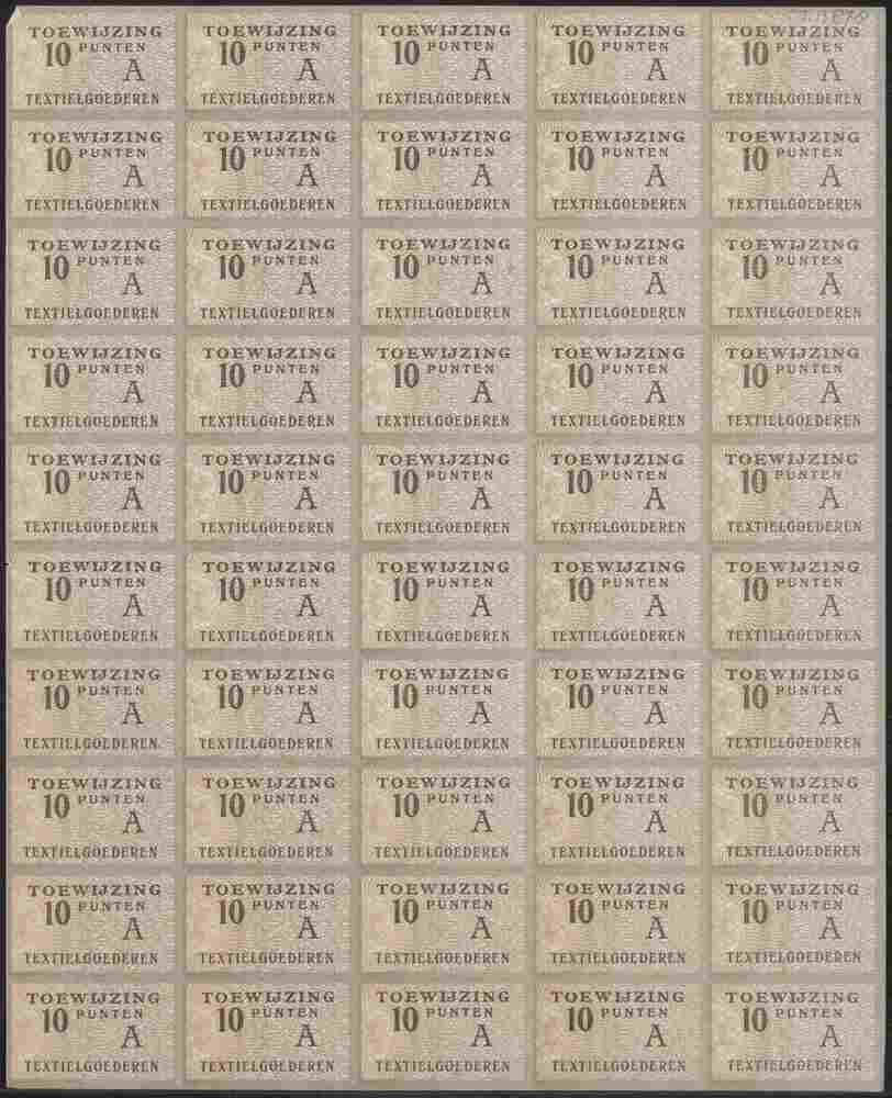 Vel bonkaarten "Toewijzing 10 punten textielgoederen"