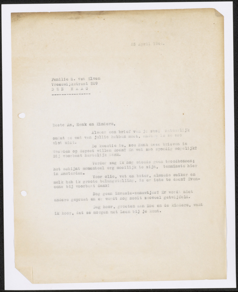 Brief, Den Haag 25/4/'44, Beste Henk, An en Kinders