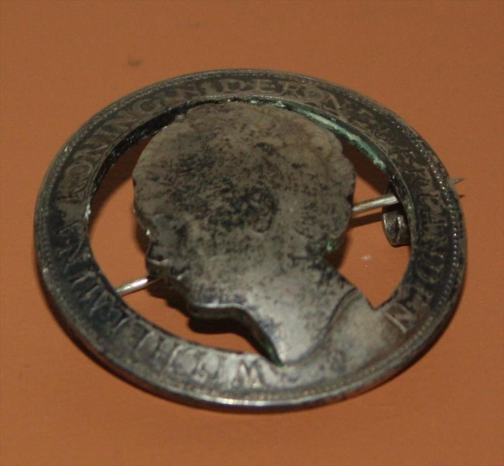 Broche van opengewerkte zilveren Rijksdaalder met he...