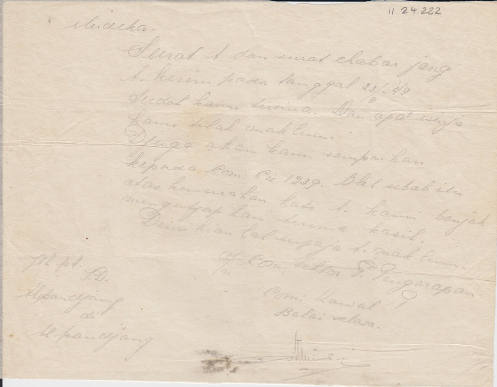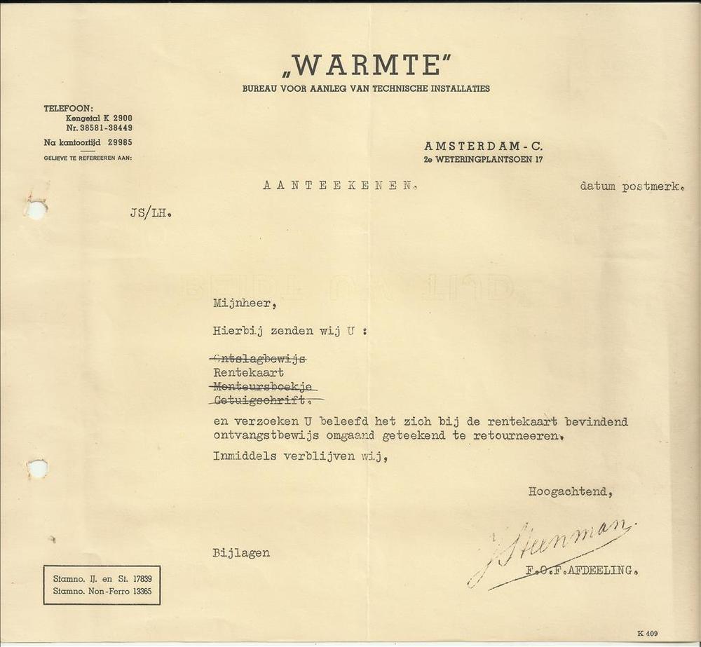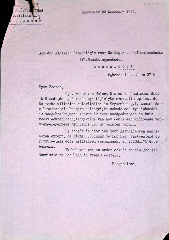 doorslag brief aan Algemeen Gemachtigde voor Oorlogs...