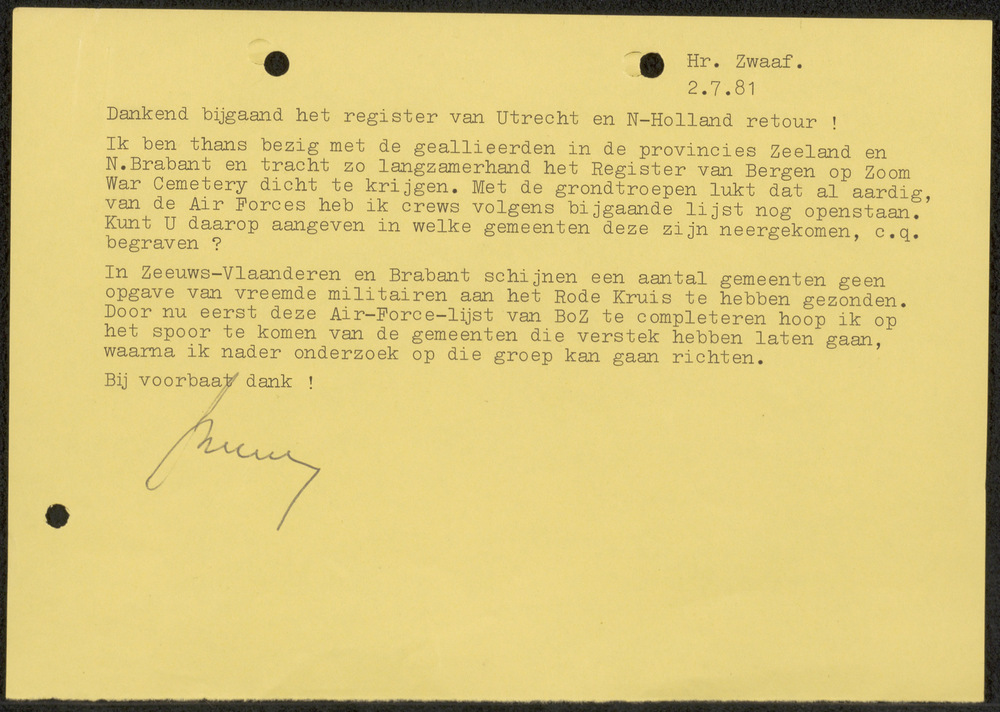 Bericht aan dhr Zwaaf op 2 juli 1981