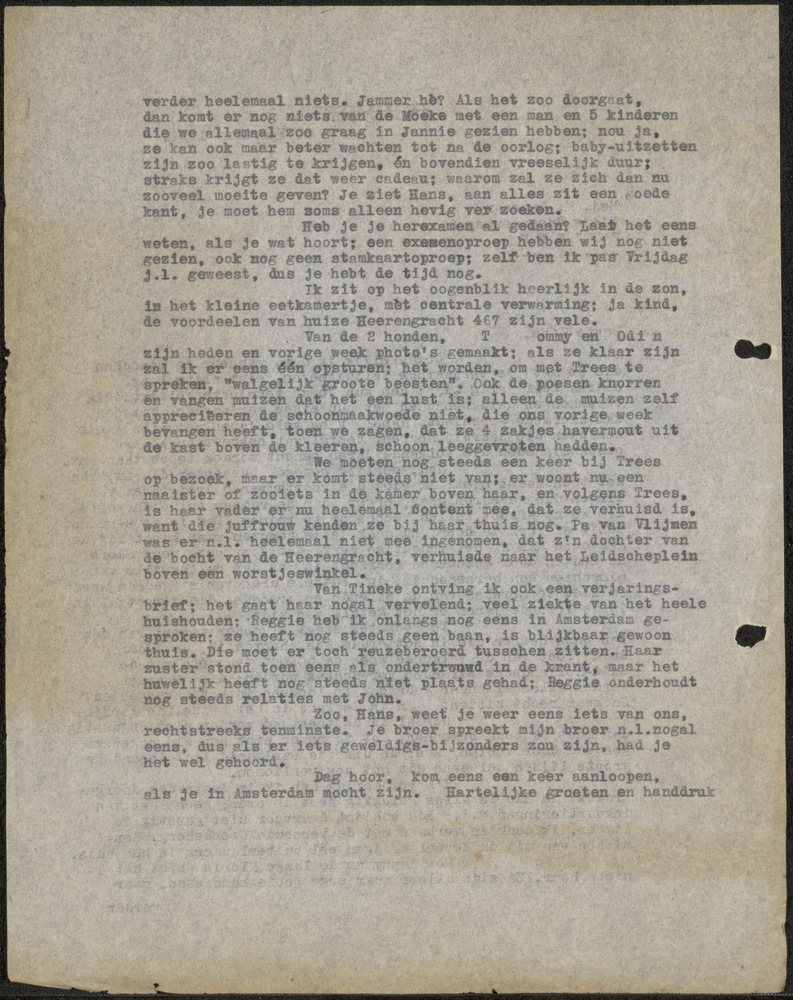 Brief aan Hans Warnaar te Huizen 20 februari 1944