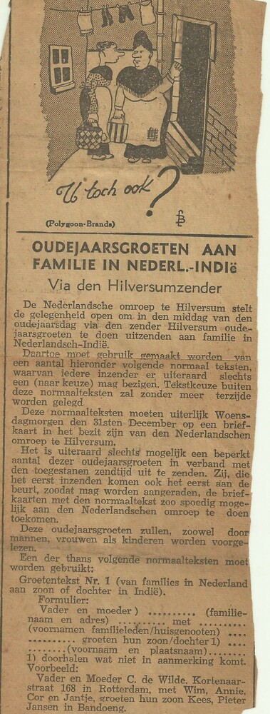 Oudejaarsgroeten aan familie in Nederlands-Indië.