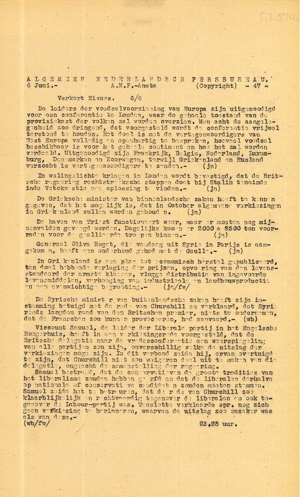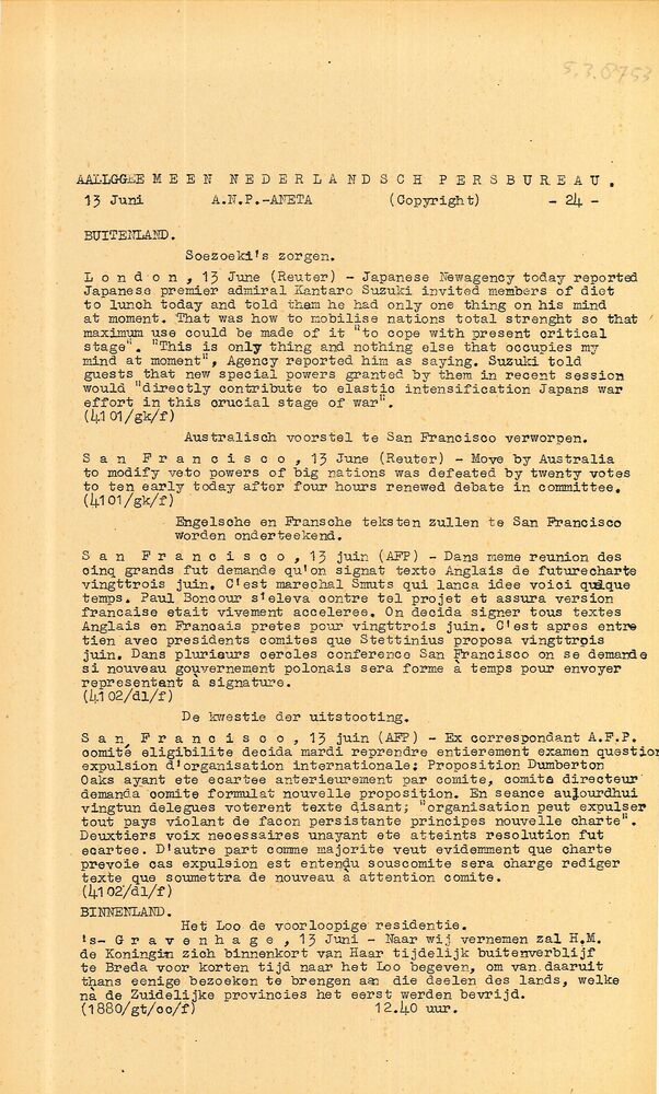 Vel: Algemeen Nederlandsch Persbureau, mededelingen,...
