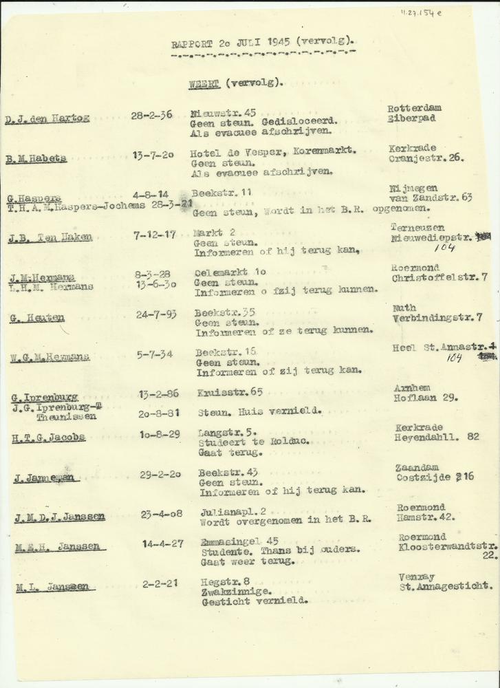 Rapport 20 juli 1945 evacuees te Weert door J. Schel...