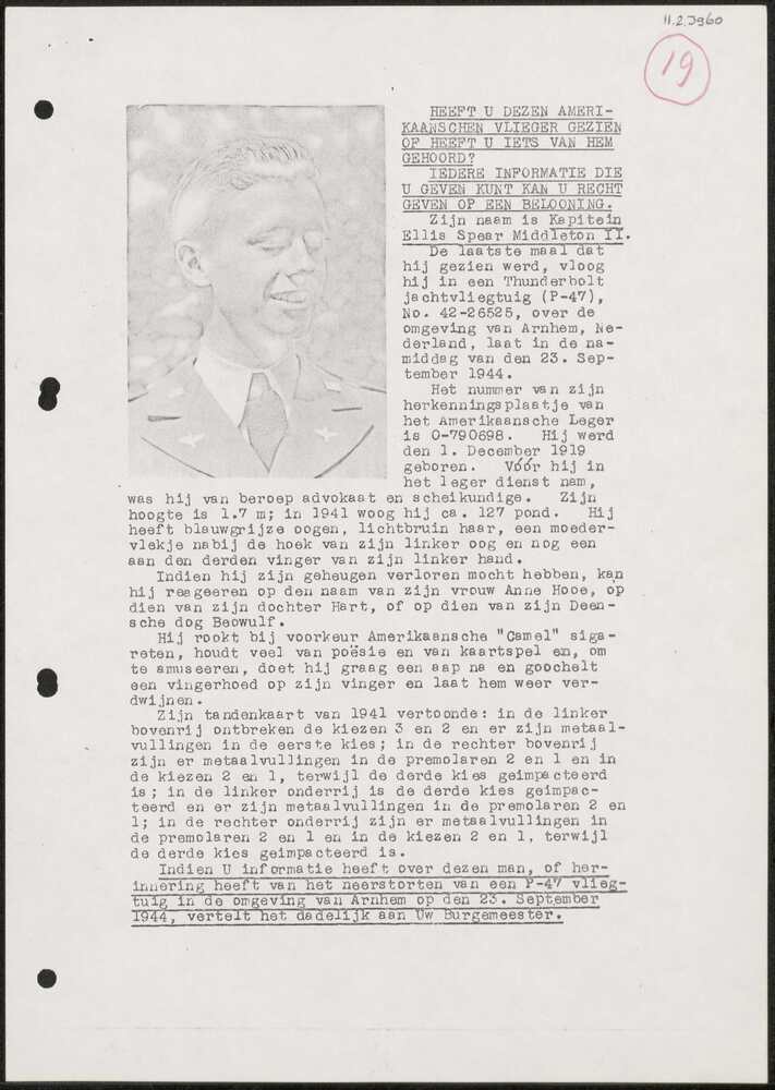 Brief van Ellis S Middleton, Stamford USA 1945.