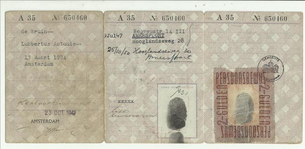 Persoonsbewijs op naam van L.A. de Bruin, Amsterdam