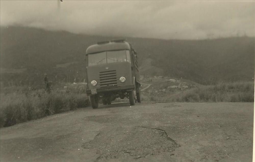 Nieuw-Guinea; DAF-truck op weg in bergen