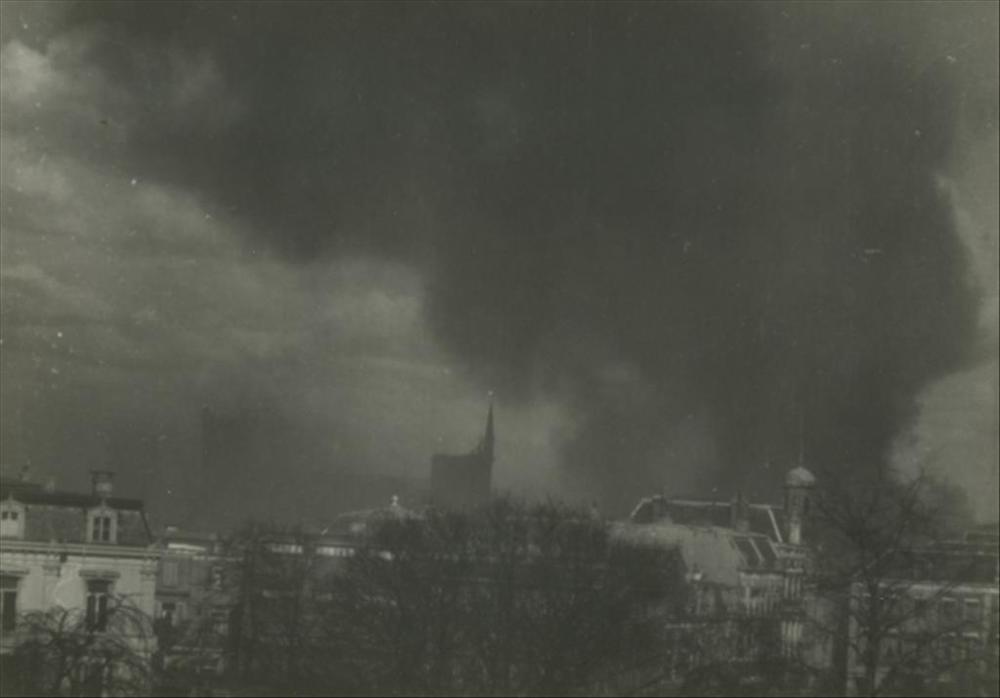 Nijmegen, 22 februari 1944; brand vanaf Keizer Karel...
