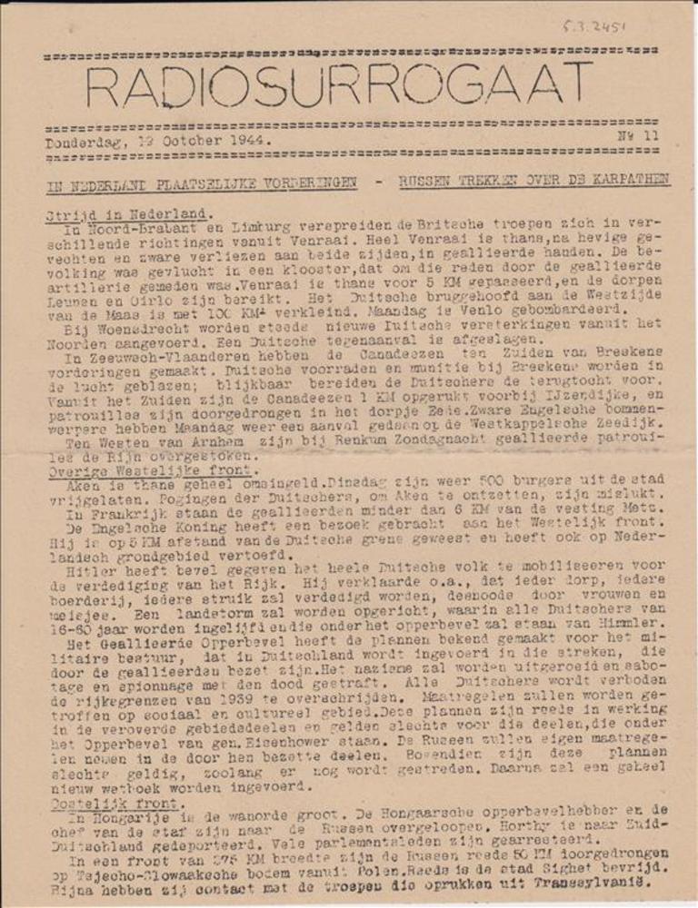 Radio Surrogaat, Donderdag 19 October 1944, No 11.