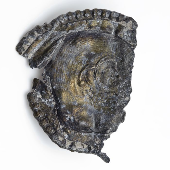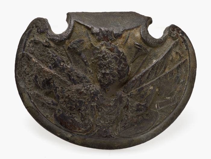 Schelpvormig militair object, schild of beslag