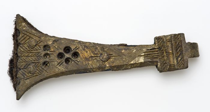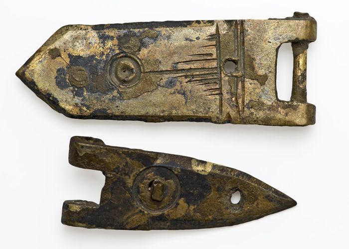 Bronzen beslag met nop en haak
