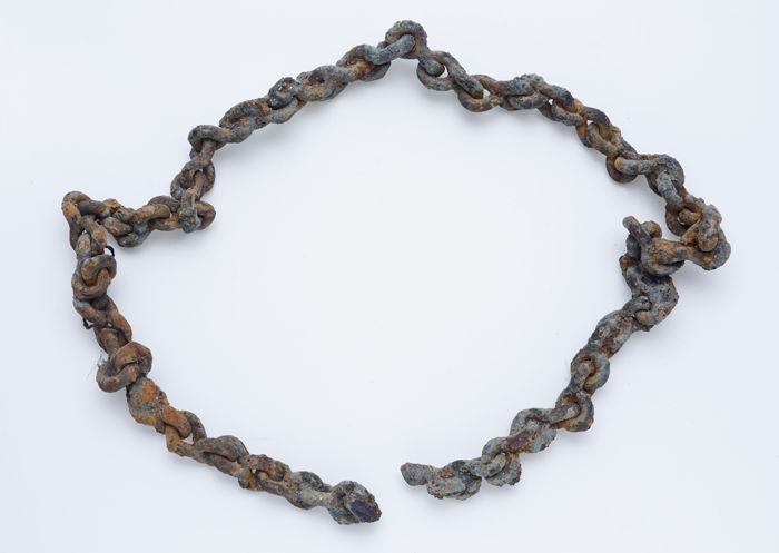 Stuk ijzeren schakelketting van gedraaide S-vormige ...