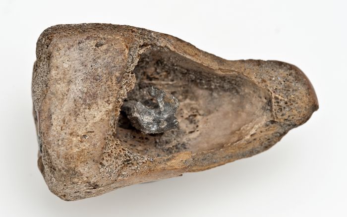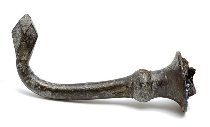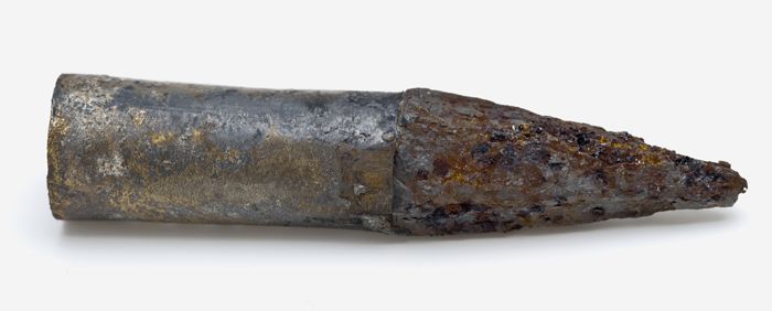 Twee puntige objecten waarvan een met een messing ma...