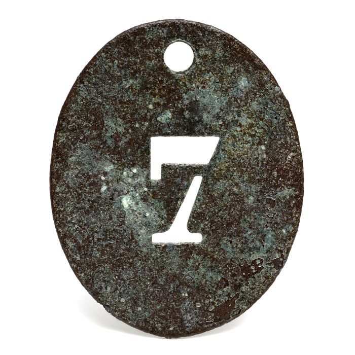 Ovale plaat met erin uitgespaard cijfer: "7"