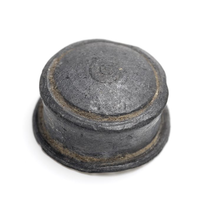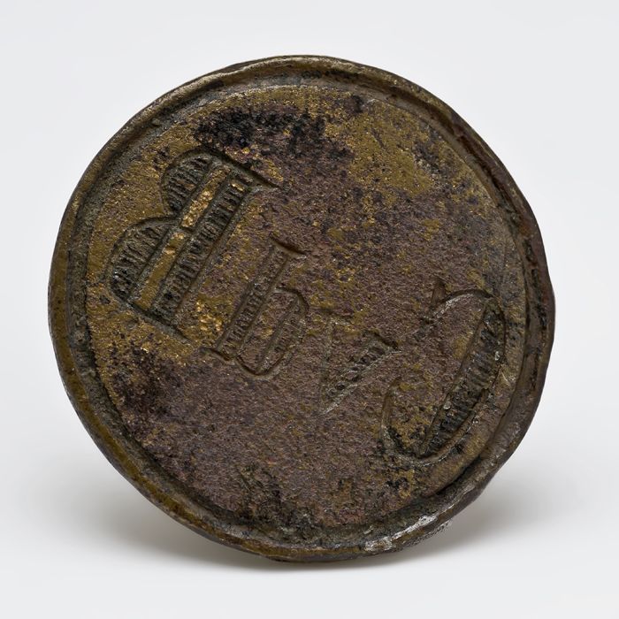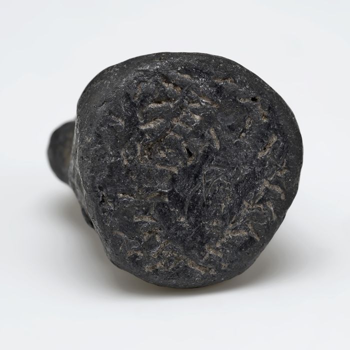 Loden zegelstempel met rond vlak waarin in reliëf on...