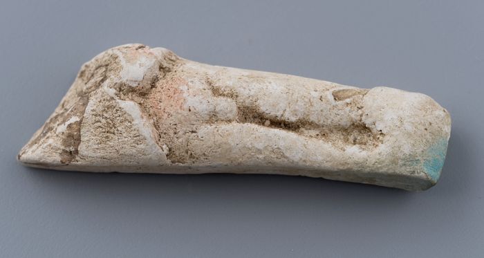 Klein pijpaarden beeld van naakte mannenfiguur