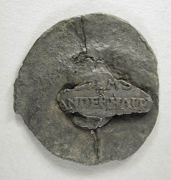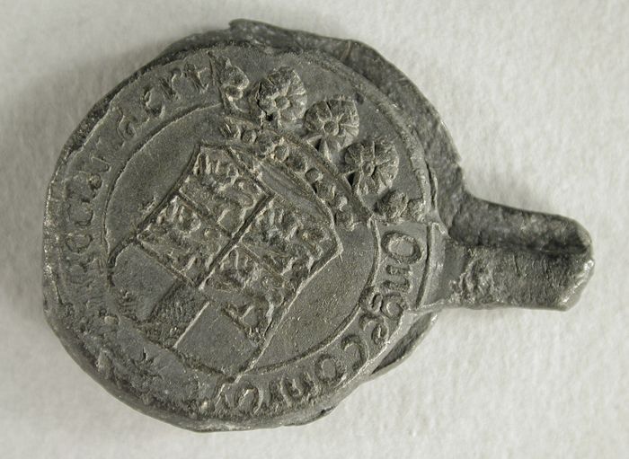 Lakenlood met Rotterdams wapen en "ANDERHALF [STAEL]"