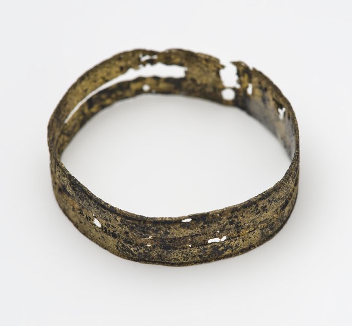 Koperen smalle ronde band, van zonnehorloge