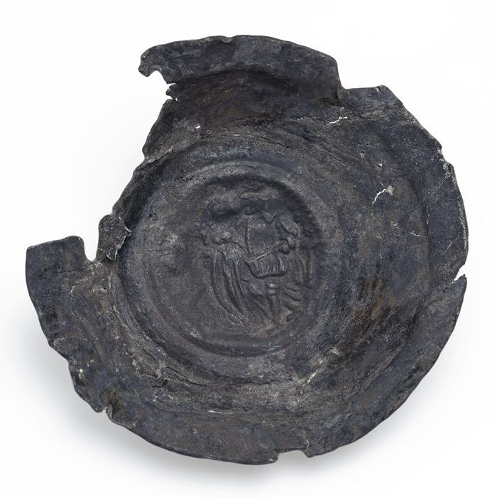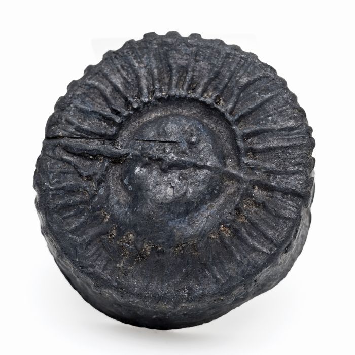 Tinnen of loden dop met maangezicht in stralenkrans ...