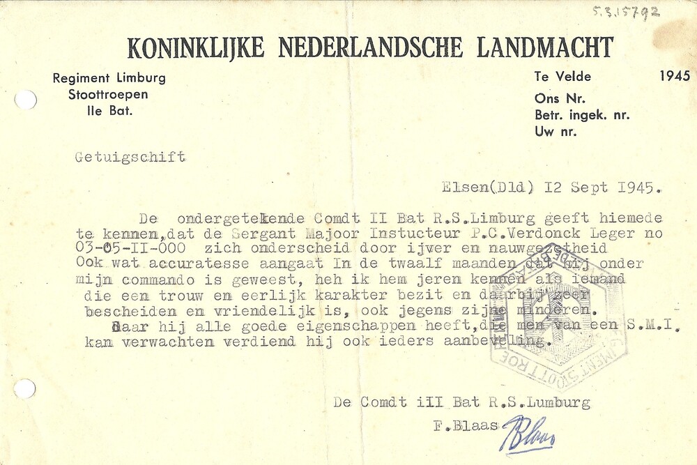 Aanbevelingsbrief betreffende P.C. Verdonck van F. B...