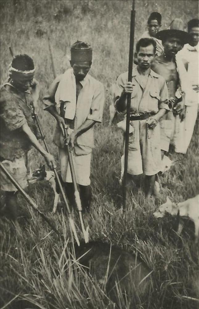 Ned. Indië na WO 2; Indische man, speer, zwijn, hond