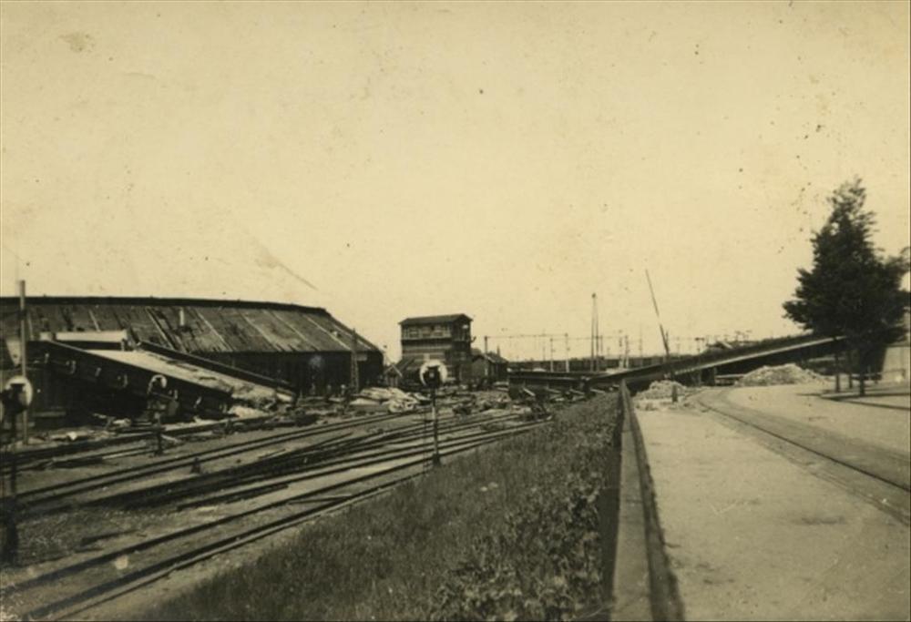 Nijmegen; opgeblazen brug spoorwegemplacement
