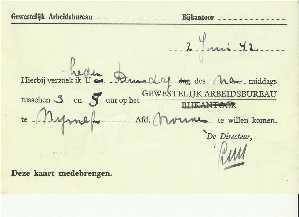 Gewestelijk Arbeidsbureau Nijmegen 2 juni 1942