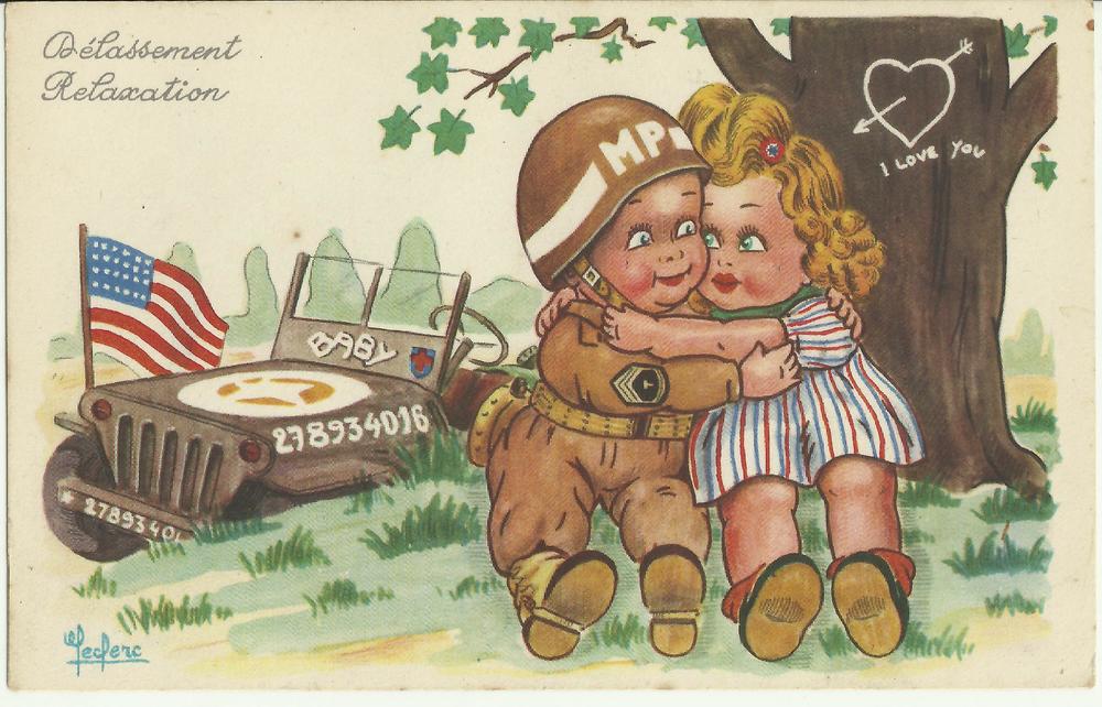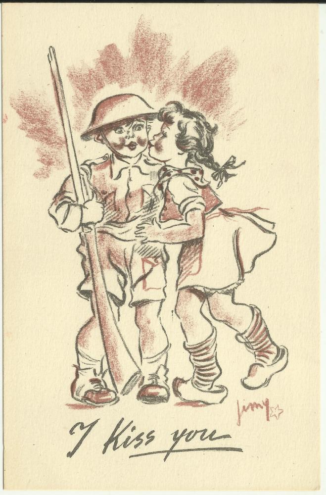 afbeelding van een M.P. die een meisje omhelst bij e...