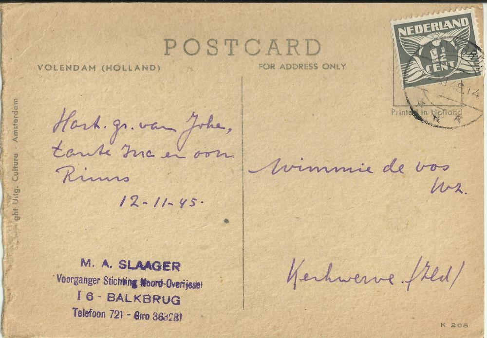 Brief in enveloppe. 29 augustus 1943. Aan den heer G...