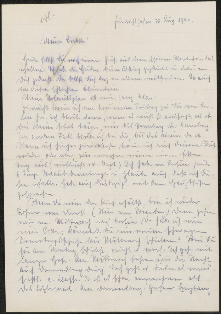 Brief aan Ella van Hubert d.d. 30-08-1940
