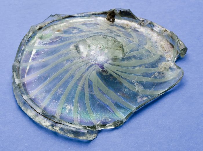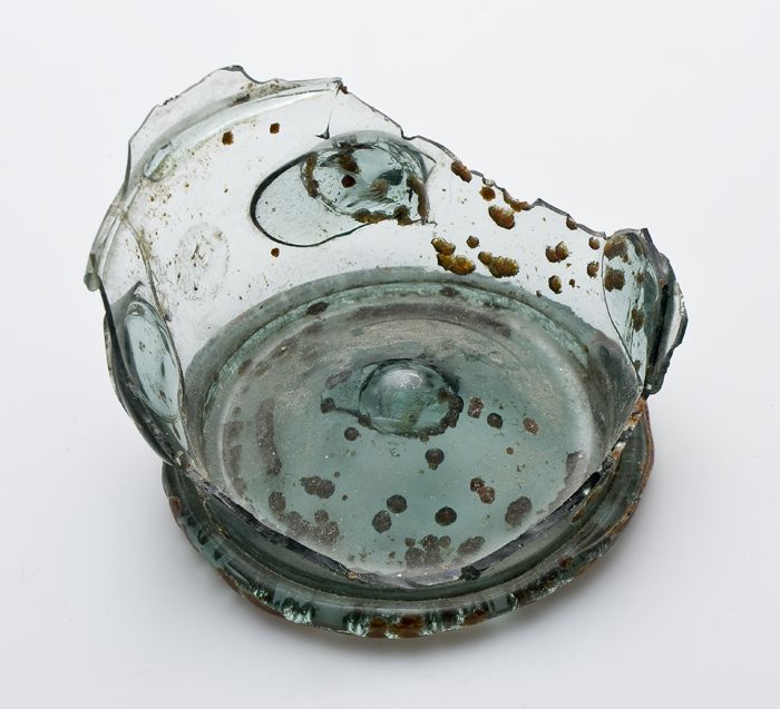 Twee fragmenten van bodem, voet en deel wand van gla...