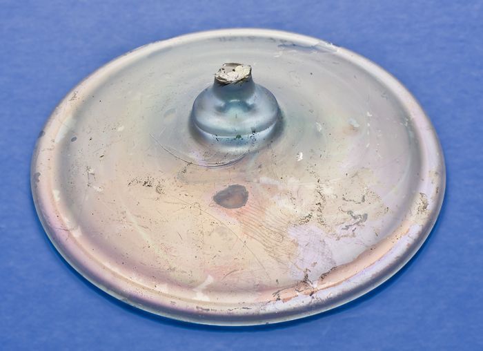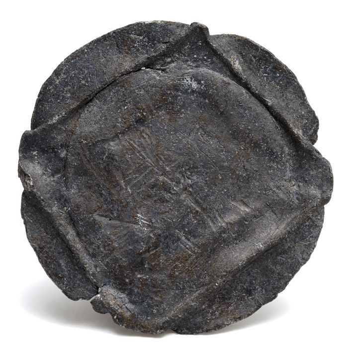 Tinnen schijf, rond met vierkant in het midden