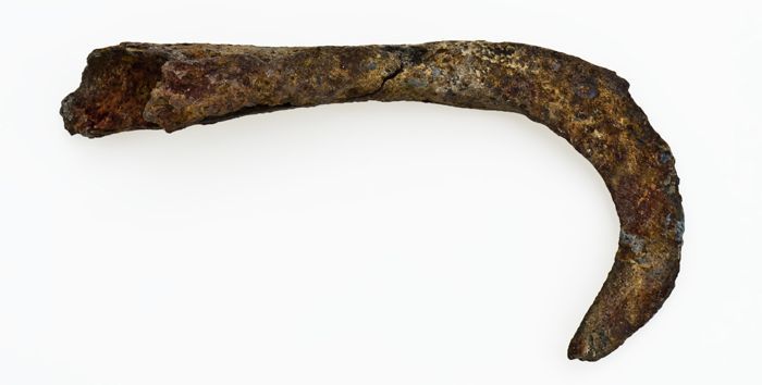 Schraper met sikkelvormig, halrond lemmet en aangesm...