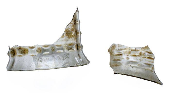 Twee fragmenten van voet van pasglas