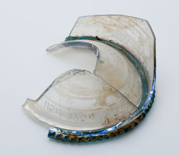 Fragment beker met blauwe standring, bodem en deel wand