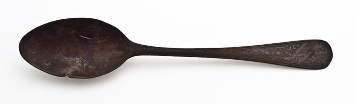 Theelepel met langwerpige ovale bak en versierde ste...