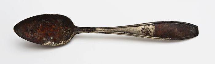 Theelepel met spitse, ovale bak en platte, enigszins...