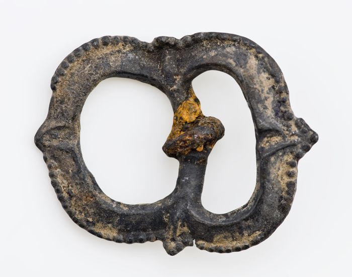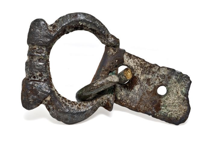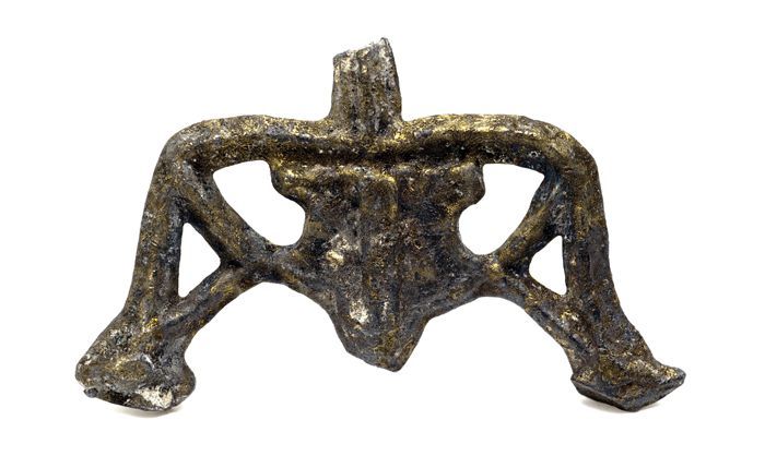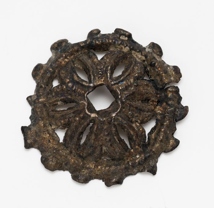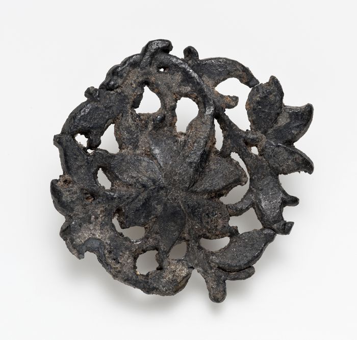 Opengewerkt beslag met gestileerde bloem in het midden