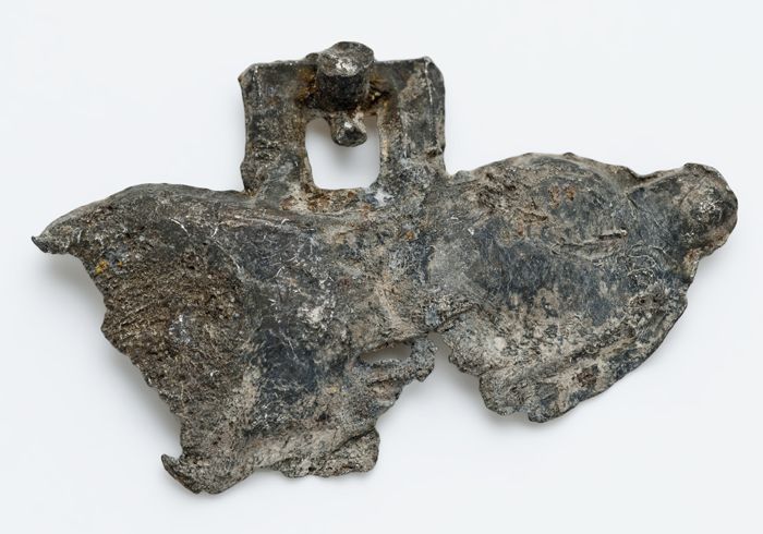 Twee tinnen fragmenten van miniatuur kist (?)