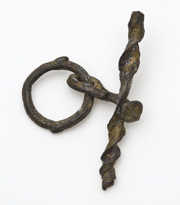 Drie kleine tinnen objecten en knop van onbestemd me...